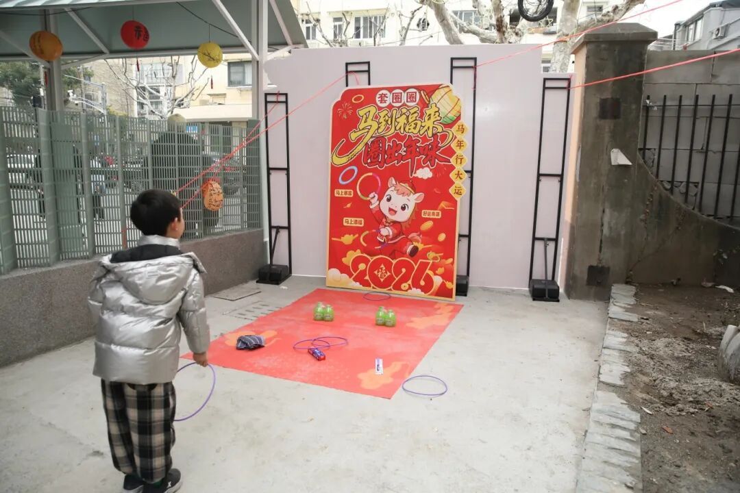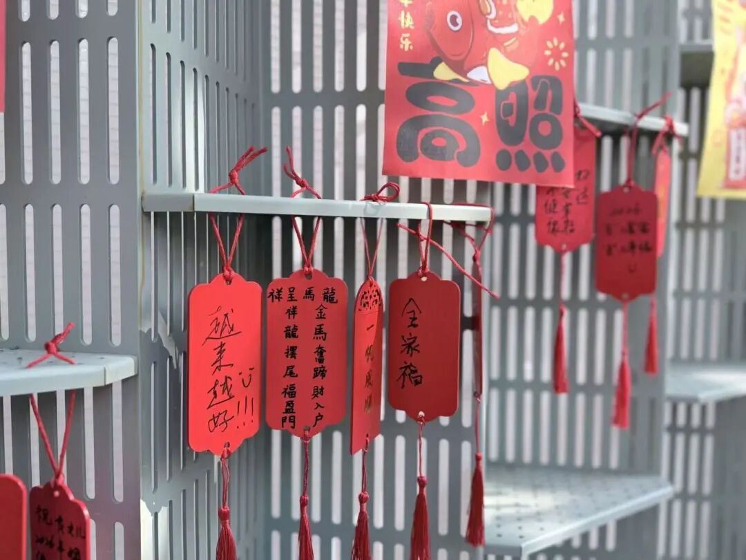 除了逛逛买买,现场还准备了多项好玩的活动。居民可以参与幸运大转盘、投壶和套圈等传统游戏,赢取奖品,重温童年过年的热闹气氛。同时,现场还设置了“福暖新春”主题打卡点与心愿墙,居民可以在这里拍照留念,或写下新年祝福悬挂起来,寄托对来年的美好期盼。