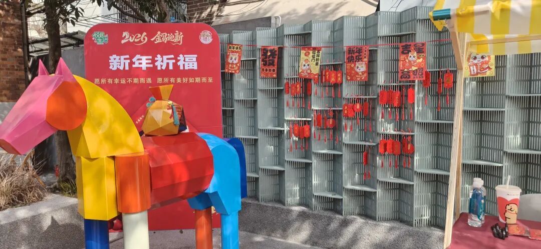 2月4日至5日,“跃马启新程、福暖迎新春”甜蜜街区新春市集在祥德路144号举行。现场集年货展销、非遗体验、更新展览、趣味游戏与音乐演出于一体,为附近居民带来一个既能购置年货、又能体验传统乐趣的温馨好去处。