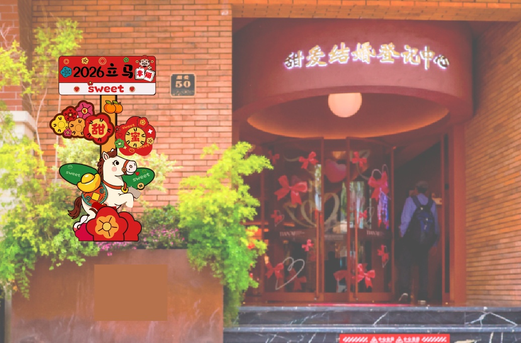 作为虹口区精心打造的浪漫地标和“甜蜜产业”的重要承载地,甜爱婚姻登记中心已是沪上知名的“甜蜜打卡点”。而到了2月10日,这里还将举办一场别致的“甜爱庙会”,为当天登记的新人提供书写“合姓囍”、领取特制糖葫芦玩偶等富有传统文化韵味的甜蜜活动。