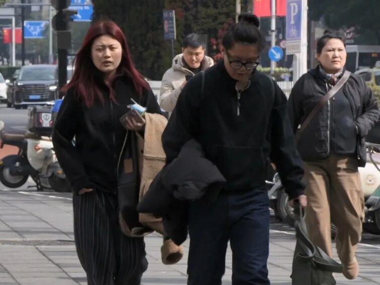 “我习惯性围着围巾出门,但是今天出了地铁站,发现还蛮热的,我就把围巾拿下来了。”白领王小姐说道。