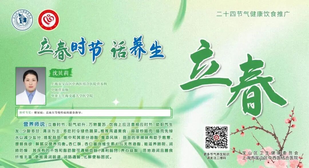 为积极践行国家卫健委“二十四节气养生与健康”理念,深度响应宝山区卫健委“健康四季——二十四节气话健康”特色科普品牌,宝山区中西医结合医院依托中西医结合专业优势,组织资深医师与营养师团队,将节气养生智慧与现代营养学深度融合,推出二十四节气系列健康养生膳食。