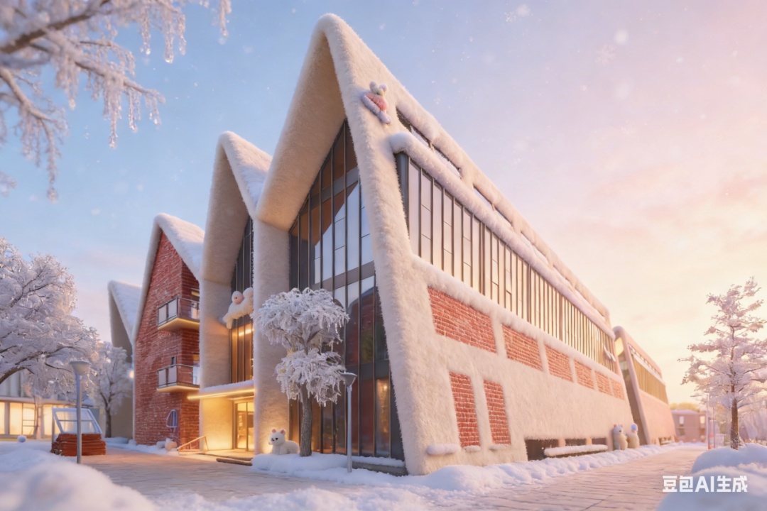 当绝美“网红”园区的红砖墙覆上一层纯白,你还认得它吗?利用AI技术生成的毛茸茸风格,熟悉的建筑穿上了一件温暖的“绒毛外衣”——百诺巧克力博物馆的尖顶、德必大华里的现代线条、环上大科技园的玻璃幕墙、陶行知纪念馆的古风屋檐,都在虚拟与现实的交错间,拥有了童话般的触感。 这是一场别开生面的视觉实验。近年来,宝山区大场镇的许多建筑群在保留本土历史脉络的同时,大胆融入现代设计元素,实现了从老工业区到文创科技聚集地的华丽转身。1876园区内历史厂房的再利用,德必大华里对旧空间的创意改造,陶行知纪念馆在新语境下的文化传承……每一处改变都是对“保留与创新”这一命题的生动诠释。 在AI绘制的图片中,雪花轻柔地落在覆盖着“绒毛”的建筑轮廓上,不仅是对物理空间的温柔重塑,更是对情感记忆的延续与创造。随着岁末的钟声渐近,这些毛茸茸的建筑仿佛在轻声诉说:最美好的更新,莫过于在变化的世界中,始终保有一份温暖的底色。 就让我们带着这份柔软 步入家门口的街道 迎接即将到来的热闹新年