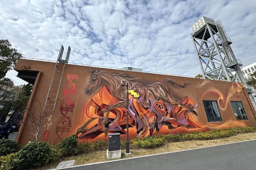复兴岛上有“马”出没! 快来打卡~ 这个春节,复兴岛悄悄变身“赛马场”。上海杨浦滨江投资开发(集团)有限公司邀请BOILING沸动的合作艺术家们,在船台PARK和共青430寓的楼宇外墙上,以笔为媒,勾勒出群马贺岁的美好景象。 马儿们踏着星光、火焰与银河, 在水泥森林里狂奔。 有的鬃毛燃成赤浪, 有的蹄下踩着音爆云, 还有的胖成一团银球镇守月光 ……不来数数, 你都不知道墙上的马儿们 有多少种奔跑的姿势! 能量马·踩着银河散步 《银河赤浪》 抬头就能看到 红紫色星云从马背喷涌而出, 金色马群在宇宙中蹄不沾地。 据说站在这面墙下, 能接到新年的第一波“能量波” ——悄悄许愿或许更灵哦。 音速马·破墙而出 《破空驹》 这匹马快得像一道残影, 斑驳喷漆、飞溅的色料, 仿佛它刚冲破音障, 连墙上的字母都被气流掀翻。 打卡姿势推荐: 假装被风吹乱头发, 与马儿共享“破空瞬间”。 黑马双胞胎·点燃墙面 《黑马将至|燃点》 两匹黑马从留白处腾空跃起, 周身火焰翻卷—— 像不像你内心那个 准备“搞大事”的灵魂终于觉醒? 傍晚时分, 橙红色块在暮色里真的像在燃烧。 冰火双马·踏云许愿 《双马奔腾》 一匹披冰川,一匹燃烈焰, 在星辰余晖里并肩奔腾。 传说它们停下的地方, 能听见新年愿望, 快来许个“马到成功”吧。 孤勇马·穿越城市荆棘 《千里走单骑》 这匹赤兔马 从旷野奔进工业丛林, 蹄铁跃过涂鸦荆棘, 身姿拉成一道弧线。 找找墙上隐藏的“黎明光束”, 站过去就能与马同框冲锋。 胖萌马·镇守糖果山河 《银骠骠镇岳》 谁说马一定要瘦? 这匹圆滚滚的“银骠骠”揣着月亮, 往墙上一站, 山河乖乖躺平。 摸一摸它泛着糖果光的肚皮, 解锁一日好心情。 文艺马·在客厅当骑士 《客厅里的堂吉诃德》 这可是最“烧脑”的一匹马, 它藏在复兴岛老厂房的转角, 用符号写诗。 拍下墙上的抽象符号, 猜猜哪个是“堂吉诃德的长枪”? 寻马小贴士 坐标:船台PARK及共青430寓的楼宇外墙上 最佳时段:晴天的午后至日落,光影会让马儿“动起来”哦 温馨提示:马儿虽帅,请勿骑墙,安全第一! 这个春节别窝在家里, 来复兴岛追马、拍马、 和马儿赛跑, 让这群墙上的精灵, 带你奔向热腾腾的新年! 文字:王歆瑜 图片:王歆瑜 视频:孙培杰 编辑:奚宇轩 *转载请注明来自上海杨浦官方微信