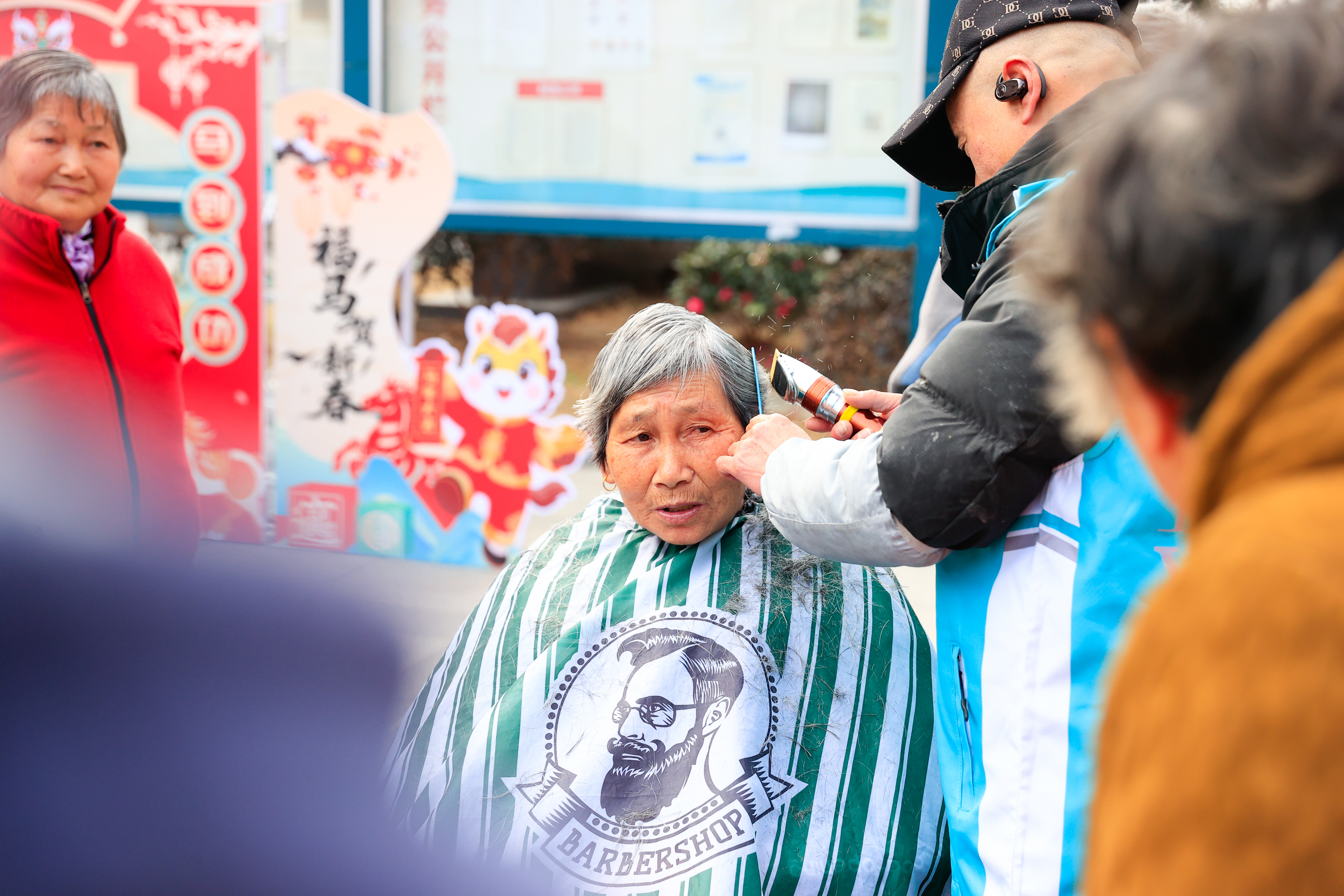 居民享受公益剪发服务。