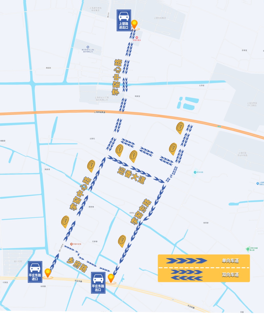 通行方向:车辆可沿迎香大道或乡府路往东行驶到李窑东路,至平庄东路出口。