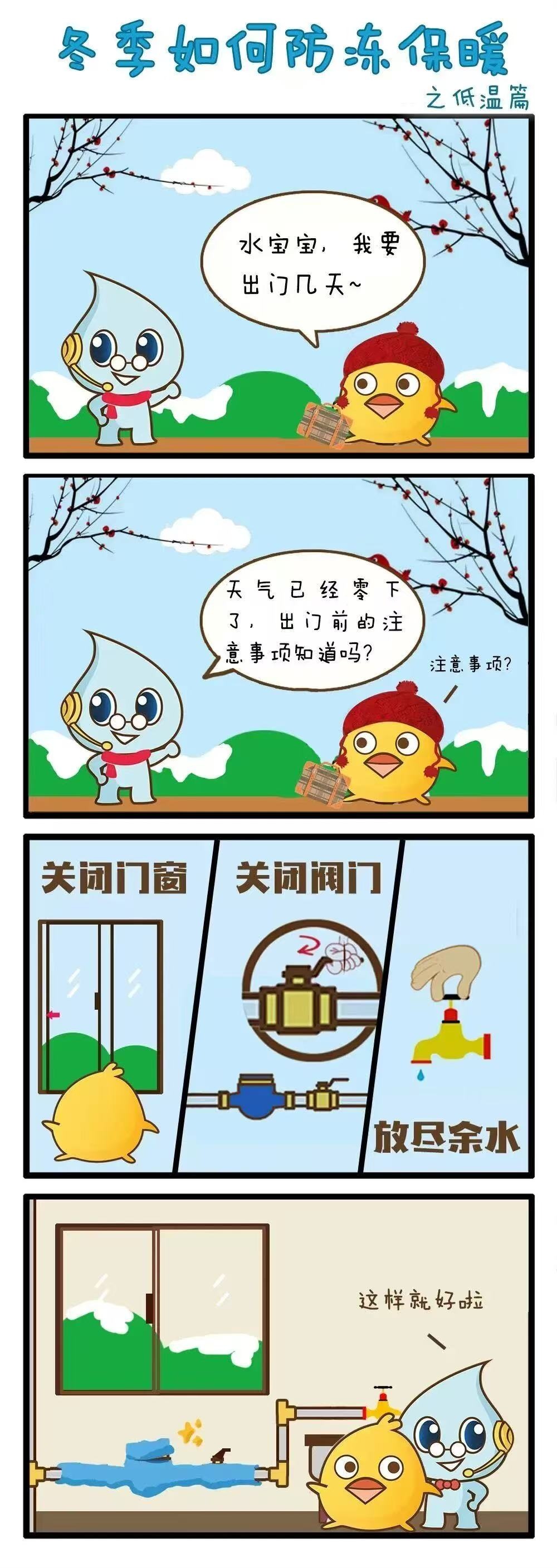 寒潮无情,守护有暖!做好冬季用水保暖防护,提前防范、科学应对,就能有效避免用水困扰。如遇任何用水难题,可随时拨打供水企业24小时客服热线,供水企业将第一时间为您提供帮助,愿大家温暖过冬、用水无忧~