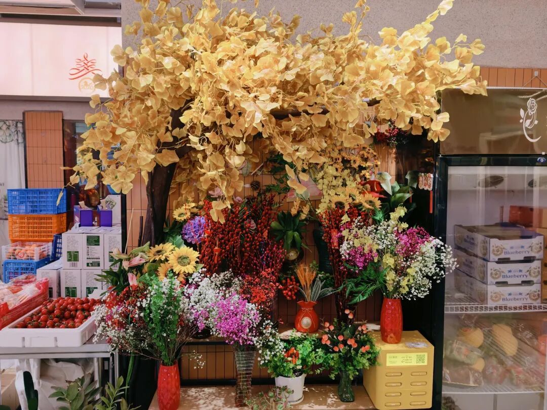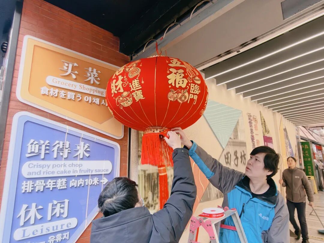 市集入口处,一串串大红灯笼高高悬挂,随风摇曳,暖意十足;市集内部,各式新春年味装置错落摆放,氛围感拉满,每一处细节都传递着过年的喜悦。