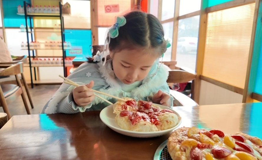 另一边,花间卿庄园内的窑烤DIY工坊更是热闹非凡。在专业面点师的指导下,市民游客纷纷动手体验,解锁窑烤美食的乐趣。擀饼、铺料、送入窑中,随着窑炉的温度逐渐攀升,没多久,一个个金黄诱人的披萨便新鲜出炉。大家迫不及待地品尝自己制作的披萨,脸上洋溢着满足的笑容。“我刚才做了披萨,很开心。”一位小朋友说。