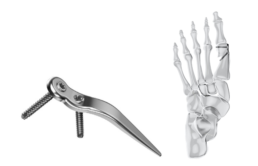 Spear Plate是一种专为微创拇外翻矫正设计的髓内固定系统。它由高强度医用合金制成,因形状似“矛”(Spear)而得名。