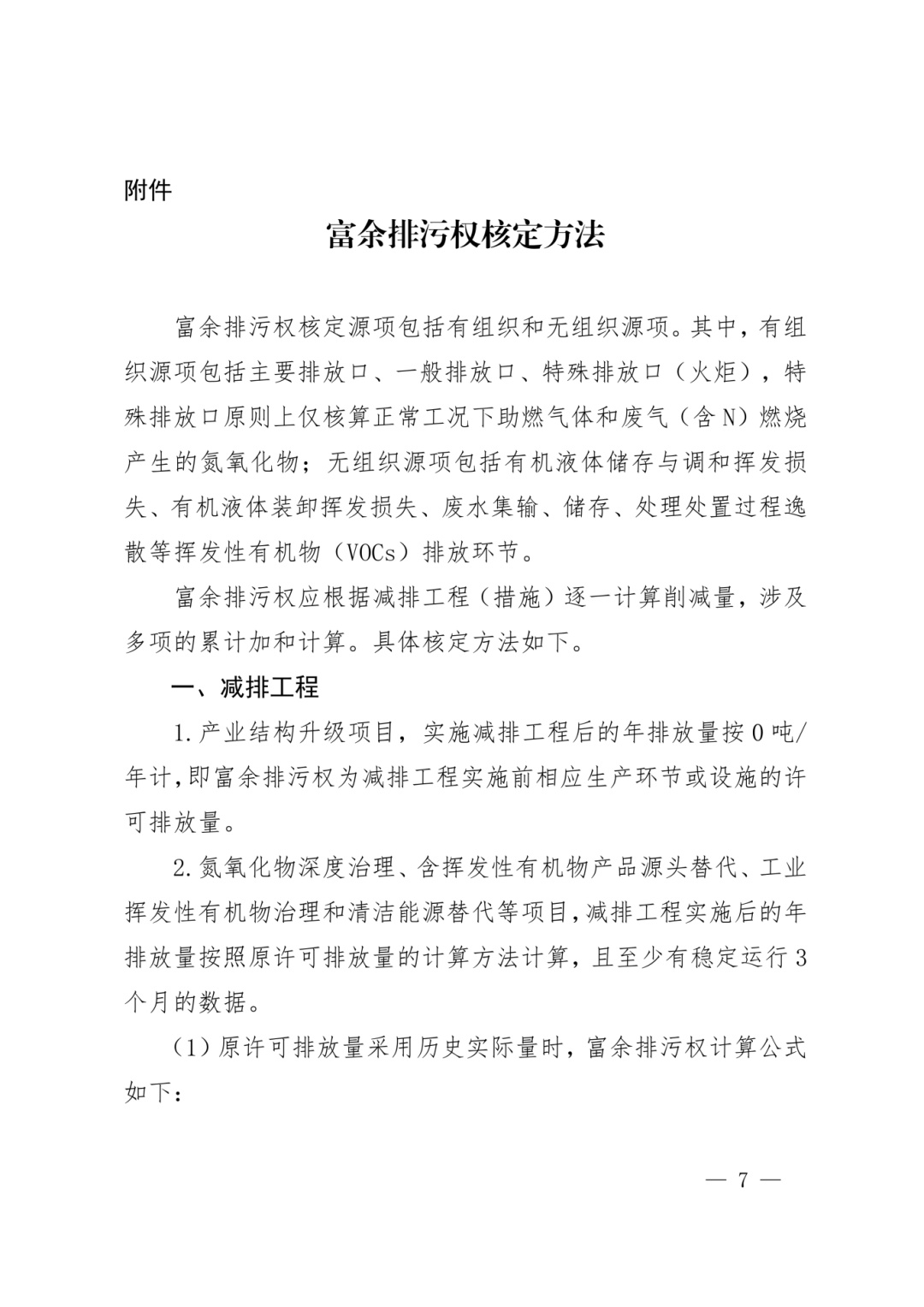 富余排污权原则上按照减排工程(措施)实施前排污许可证中相应生产环节(设施)的许可排放量,和实施后按许可排放量计算规则计算的年排放量差值确定。其中,实施减排工程(措施)后的年排放量应以正常工况下稳定运行的数据计算,核定方法详见附件。减排工程的富余排污权计算结果应不大于按《主要污染物总量减排核算技术指南》计算的减排量;已用于建设项目“以新带老”的减排工程(措施),其减排量在核定富余排污权时应予扣除,不得重复计算。