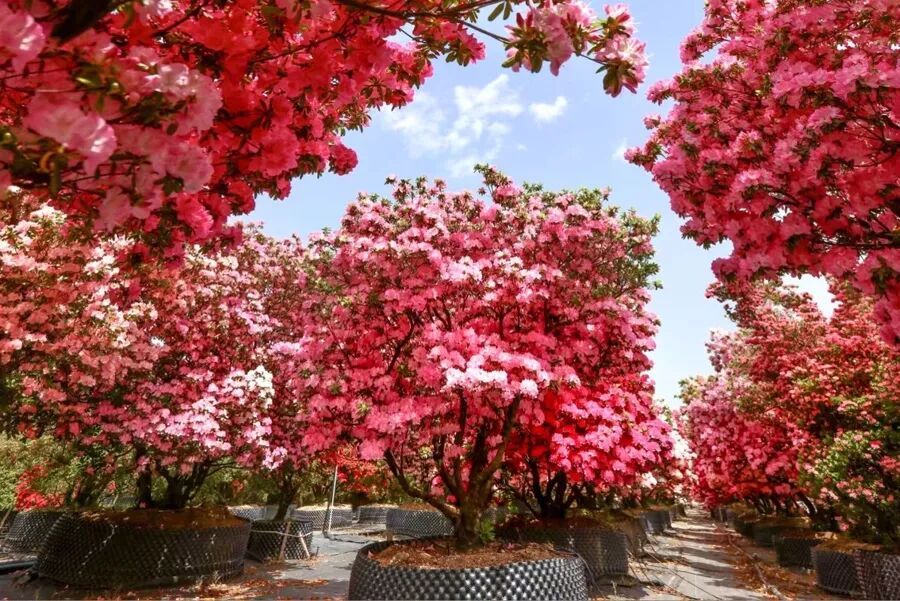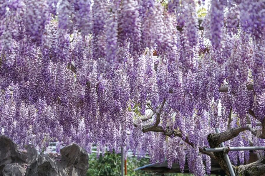 3月中旬至5月初,则是杜鹃紫藤争艳的时刻。超大型锦绣杜鹃和紫藤将形成视觉焦点。其中紫藤汇集了数十个优良品种,紫色花穗如瀑布倾泻。