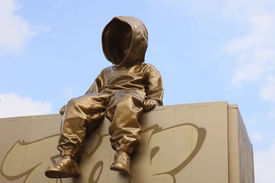 比如,“古今对望”展示千年油橄榄与垂枝梅相映成趣,雕塑《孩子王》静坐屋檐;“一蚂当先”展示高达13米的《蚂蚁·奔》雕塑;“云中花海”中,垂落的花枝下是蔡志松的雕塑《浮云》;“蘑力梅景”中,冠幅宽达8米的垂枝梅横展如云,刚柔共栖……