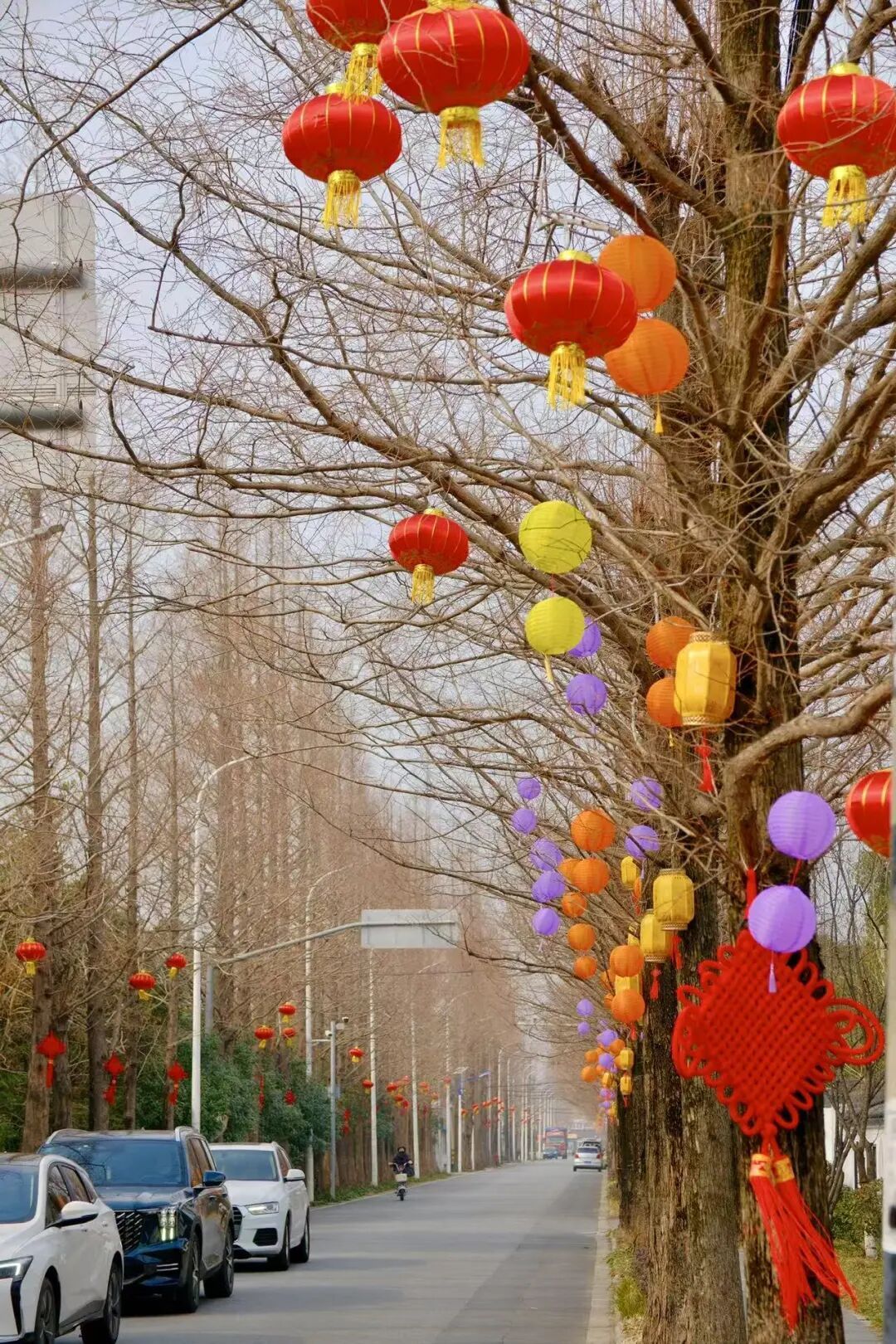 当红灯笼与中国结点亮村路