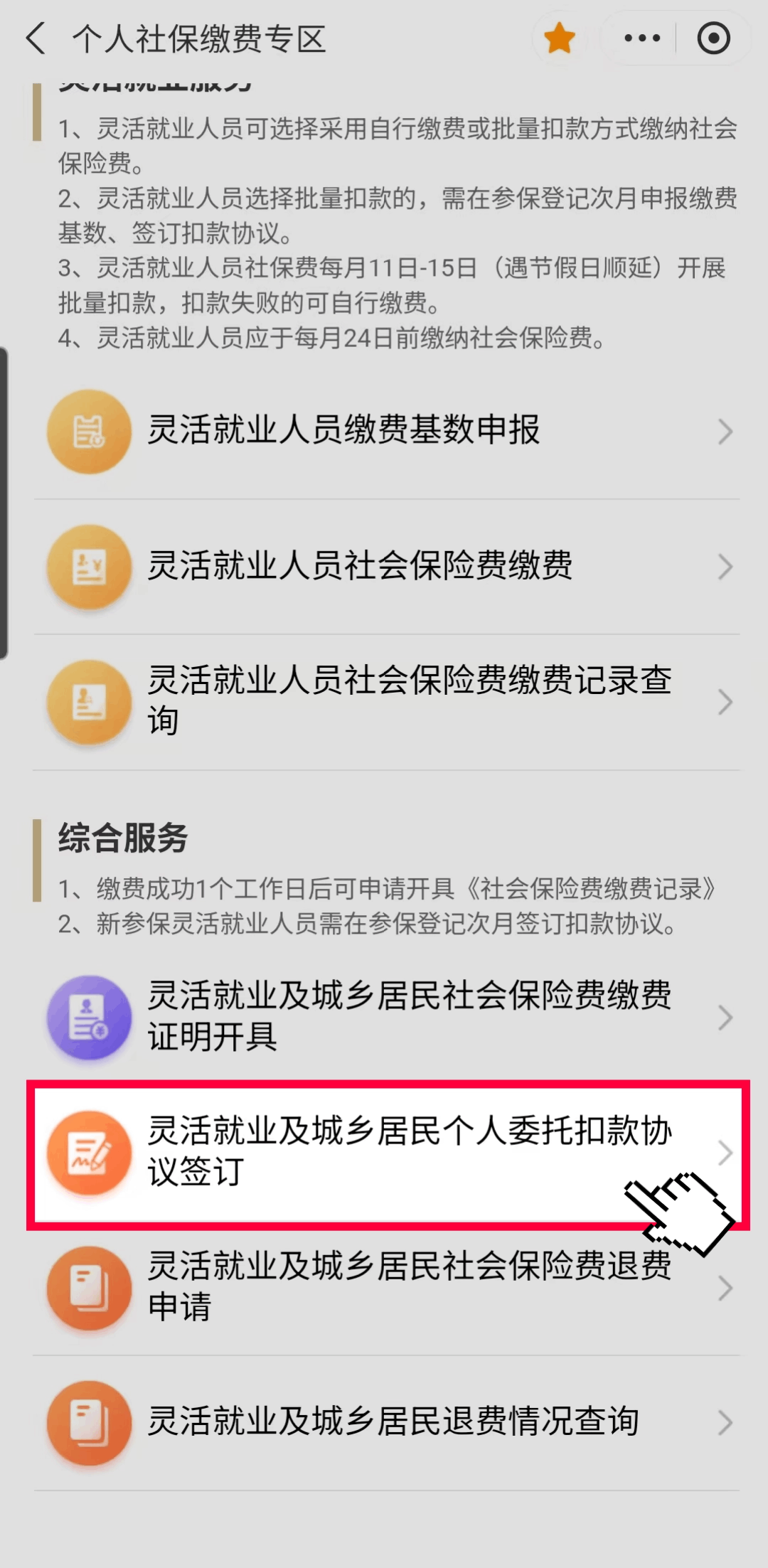 通过“随申办市民云”(APP/微信小程序/支付宝小程序)“个人社保缴费专区”,下滑找到“灵活就业及城乡居民个人委托扣款协议签订”。