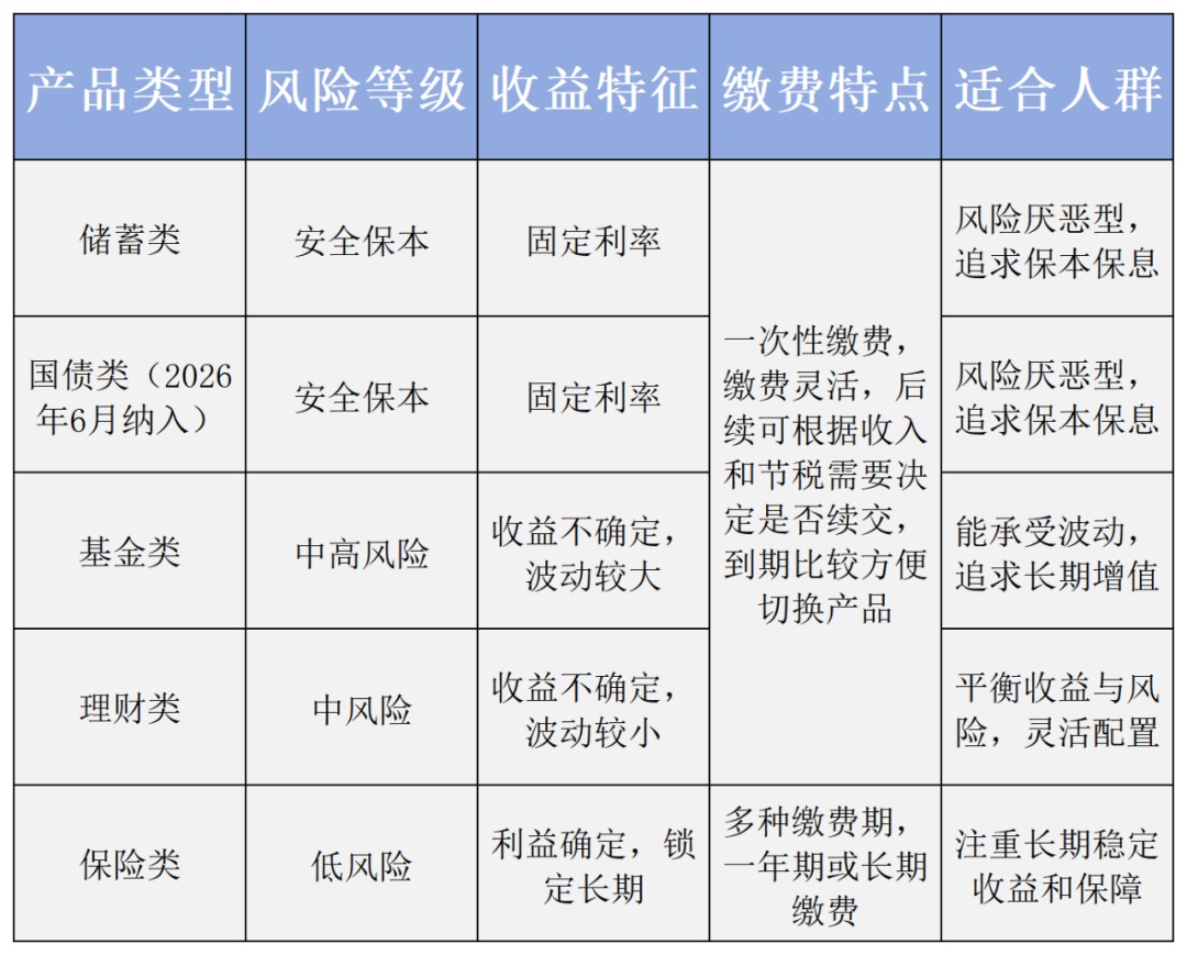 除了个人养老金,普通人也可通过以下低风险工具进行养老储备: