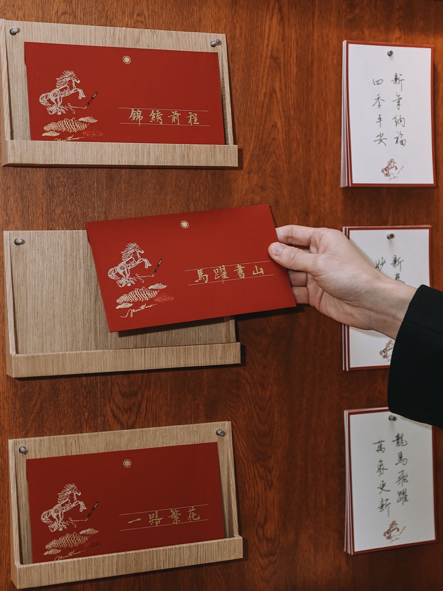 活动以“交换”为核心互动逻辑,构建起从文化体验到商业消费的顺畅链路。访客可在此挑选心仪祝福卡片,以万宝龙书写工具亲笔题写新春寄语,并与其他参与者交换祝福卡片,在笔墨往来中重拾手写温度与情感连接。