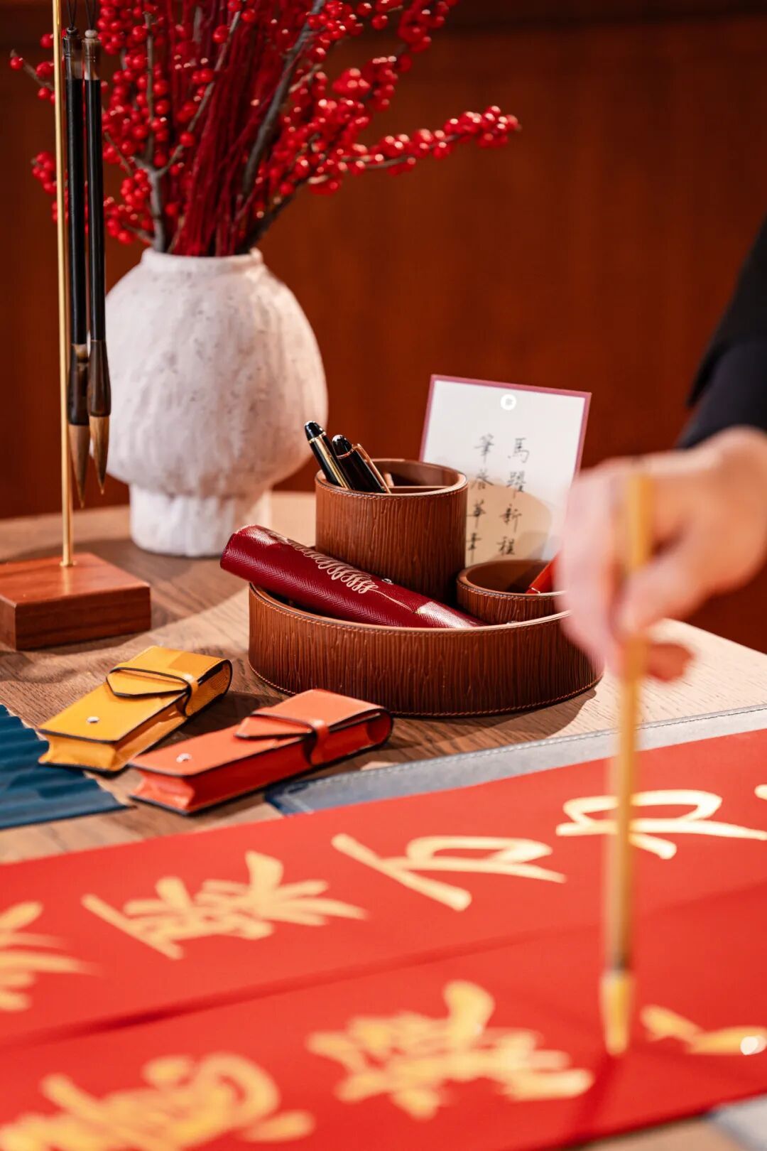 空间内同步陈列万宝龙马年限定系列及精选皮具作品。马年限定系列皮具作品以象征吉祥富饶的红与金为主色调,装饰Montblanc Horse刺绣,共庆万象更新;兼具摩登设计与实用功能的旅行箱及精选皮具,采用质感细腻的树纹与粒纹皮革,搭配沉静温润的大地色系,成为承载思想与物件的随行伴侣。匠心杰作与艺术空间相得益彰,共同构建起一个关于旅程、书写与情感温度的万宝龙世界。