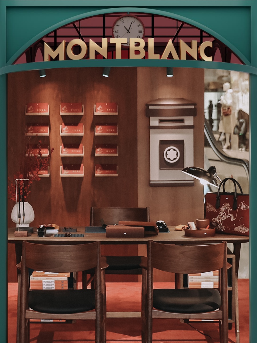“新愿站台”以“万宝龙灵感专列候车室”为设计主线,复古色调搭配木质展具的温润质感,营造出春节回家旅途中的温馨氛围。空间将“春节回家”这一当代中国最具情感张力的社会图景,升华为一场兼具仪式感与艺术性的书写文化叙事。