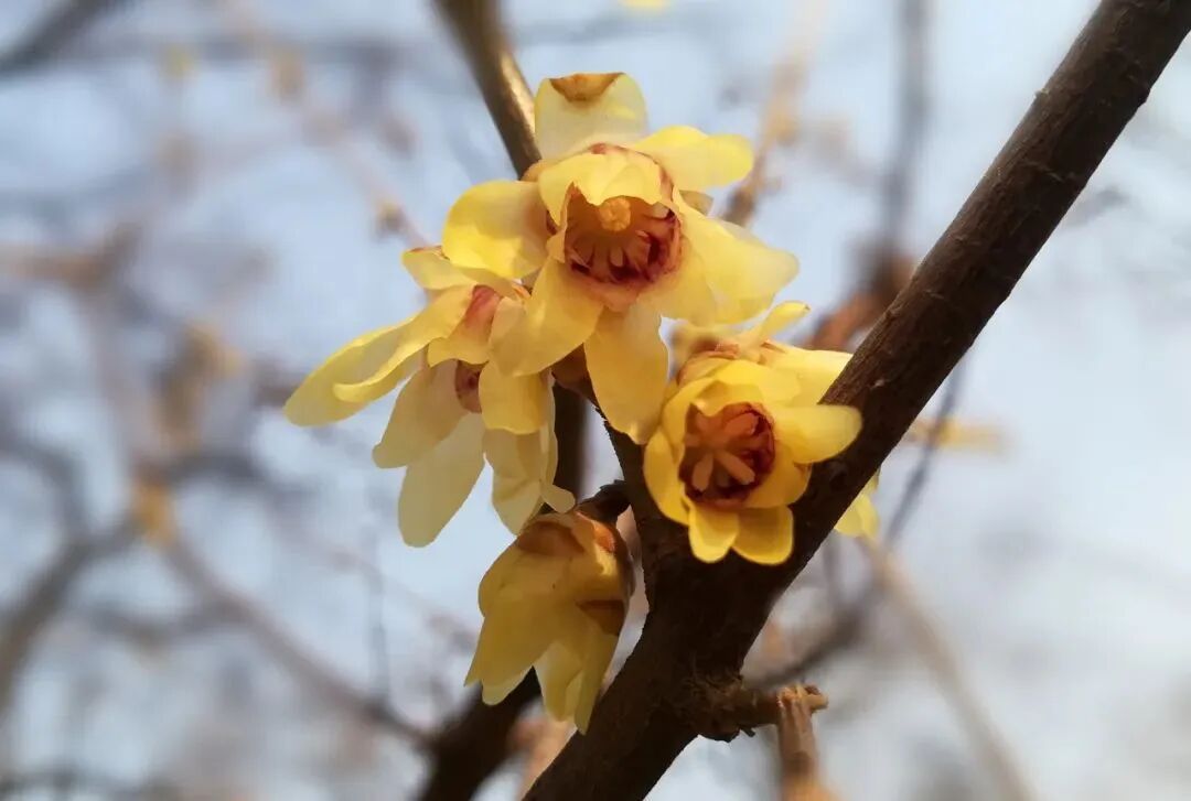 蜡梅之名,因花质似蜜蜡而来;又因腊月凌寒绽放,常被称作“腊梅”,花期恰逢12月至翌年2月,是岁末年初最应景的花信。