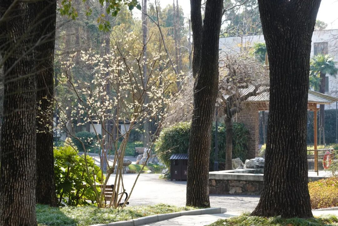 如今在徐汇的公园绿地里,蜡梅已悄然盛开。枝叶间,有的含苞待放、嫩黄初绽,有的肆意舒展、花香正浓,微风拂过,嫩黄花瓣轻轻摇曳,缕缕暗香沁人心脾。漫步蜡梅树下,听风过花枝,闻暗香浮动,冬日的清雅韵致,便藏在这一方天地间。