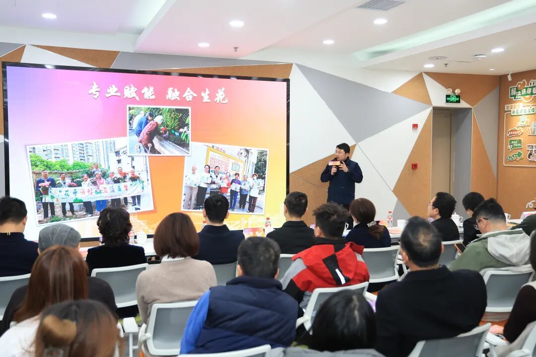 专业支持:顺丰速递站点负责人谢扬和顾卞裘丽敬老院院长阮捷带来《专业赋能,融合生花》的分享,展现党建引领“专业社工+志愿服务” 融合项目的丰硕成果。