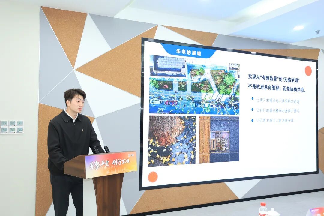 民主协商:颐乐生活综合网格工作站副站长冯佳栋带来《以“三会”聚共识 商铺皆是“合伙人”》的分享,展现新时代基层治理“三会”制度在街区商圈的新实践。