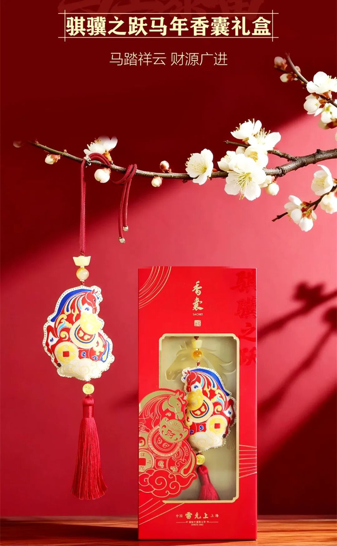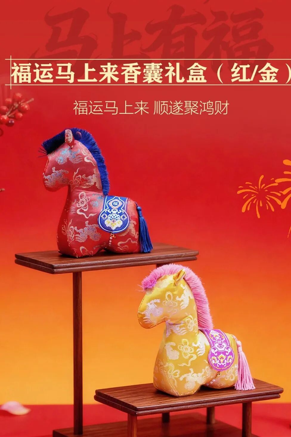 以金线勾勒轮廓、脚踏祥云的骐骥之跃马年香囊、双面藏福的福马开运香囊等马年香囊新品借助多元设计语言,以香载福,送上“跃马迎春”的新年第一声美好祝福。