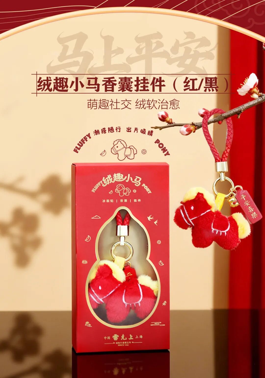 马上有福、马上平安、马上开运……雷允上西区此次推出的“灵骏迎新”马年生肖香囊系列共有九款特色设计,不仅将骏马的灵动神采与本草芳香巧妙相融,而且造型萌趣可爱,每一处细节都装满新年祝福,让不少消费者忍不住下单,甚至一买再买。