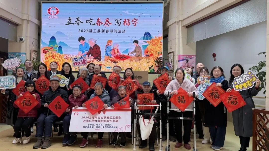 2月4日立春之际,市台协静安区工委会组织多家台企和爱心人士,走进上海静安区孙克仁养老福利院,开展“立春 吃春卷 写福字”2026静工委新春慰问活动,以暖心善举为老人们送去春日关怀,传递两岸同胞温情。