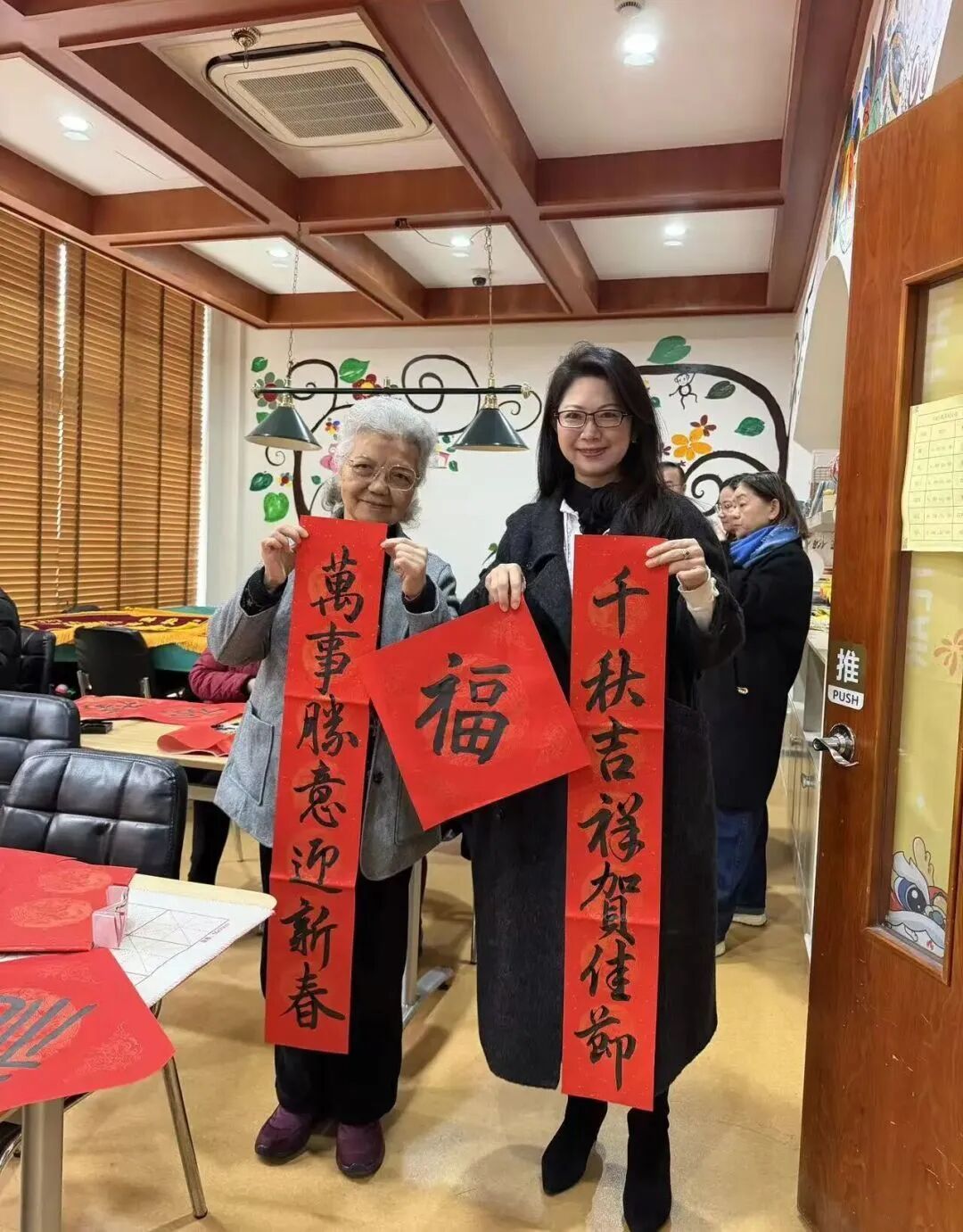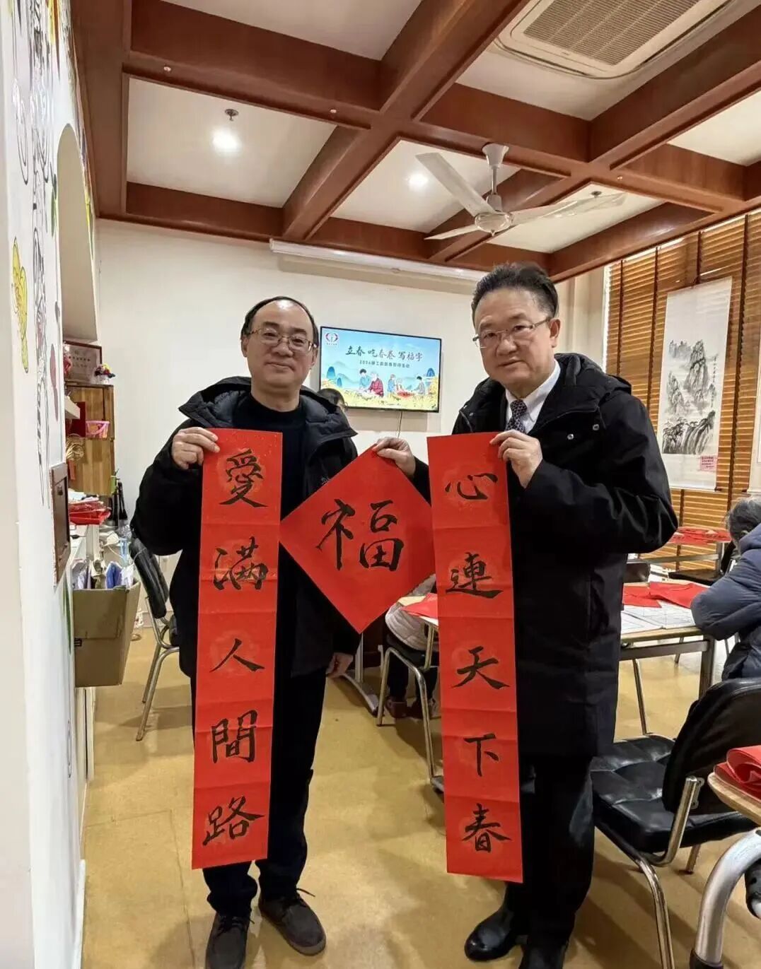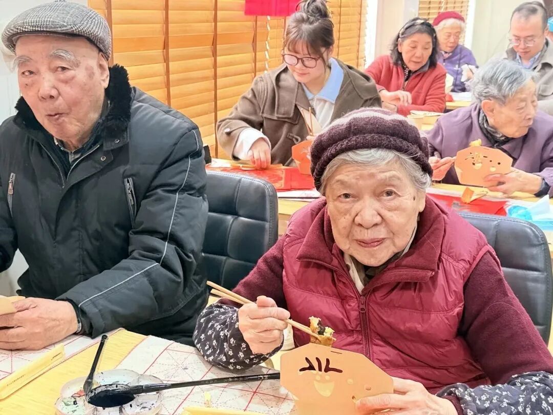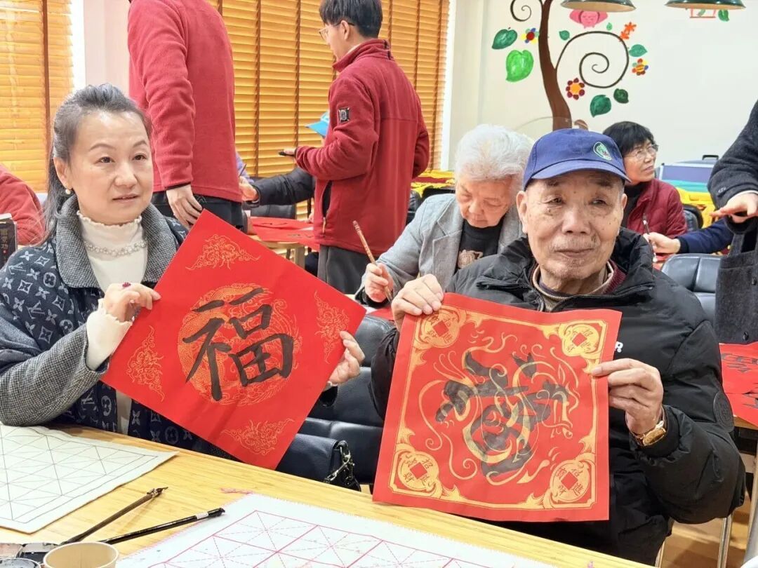 仪式后,大家与老人一同挥毫泼墨,蘸墨书写福字与春联,笔墨间满是新春祝福;共品春卷,体验“咬春”传统习俗,在欢声笑语中洋溢着浓浓年味。