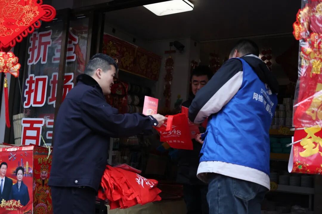 除室内讲座外,普法队伍兵分多路开展户外宣传。监狱民警联合司法局工作人员走进街头巷尾,向过往群众、沿街商户发放《防诈骗普法宣传手册》、普法手提袋等法治宣传资料,推动普法触角向基层延伸。