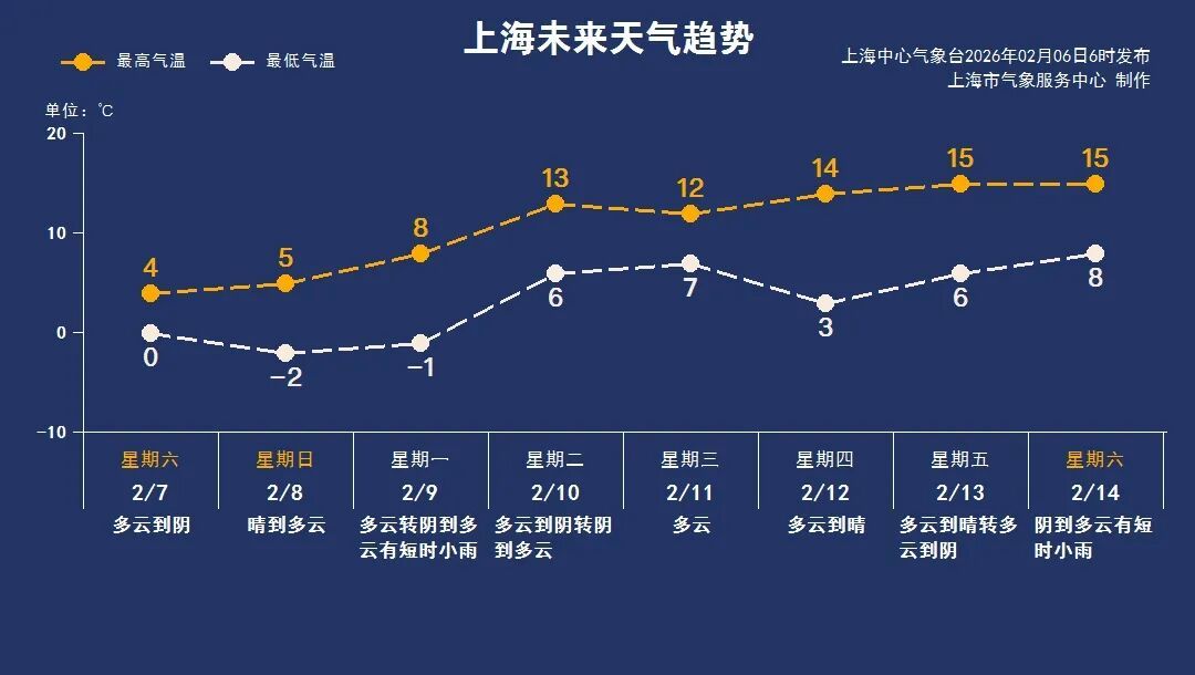 双休日上海天气转晴,北风阵阵气温低迷,体感干冷;下周上海是“两头阴雨中间晴”的天气,气温整体有所回升,周中后期最高气温在12~15℃之间。