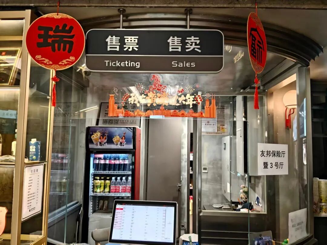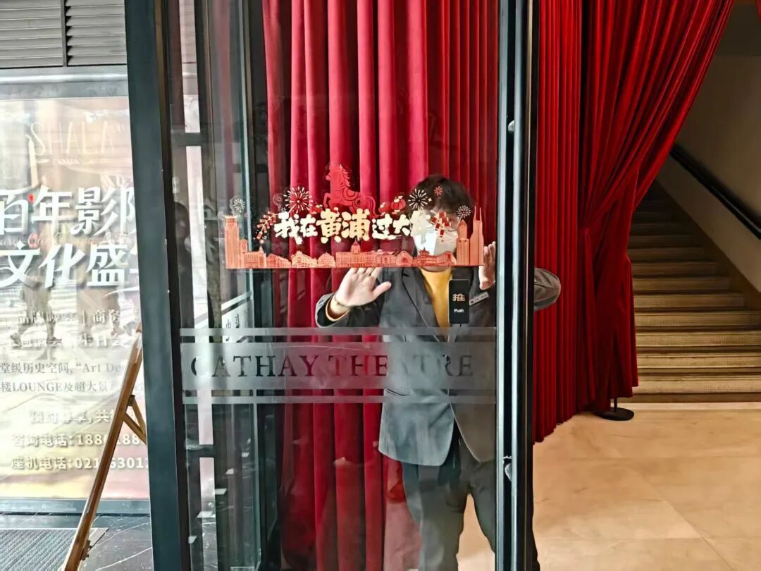 辞旧迎新之际,影院精心筹备,今年新春将胶片的浪漫与传统的年味巧妙融合,用红韵装点为主色调,工作人员将“我在黄浦过大年”的贴纸贴在大门上,为每一位新春奔赴而来的观众,铺就一场始于视觉、暖至心底的新年序曲。