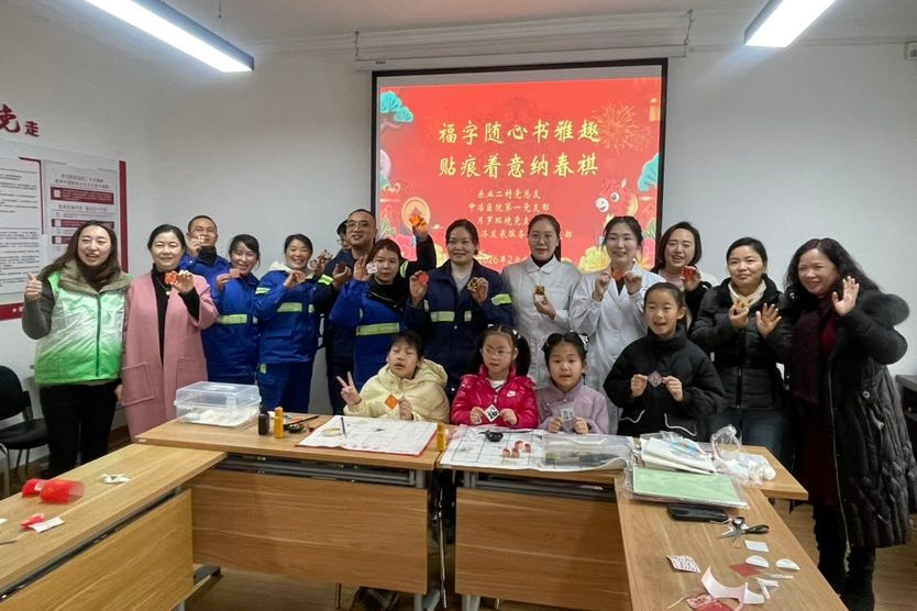 为致敬一线劳动者,传承传统书法与民俗文化,宝山区月浦镇乐业二村开展“福字随心书雅趣 贴痕着意纳春祺”手工活动,孩子们化身小小手工老师,现场教学环卫工人、医护人员制作新年主题冰箱贴,以笔墨传福、以手作致敬,共赴新春之约。