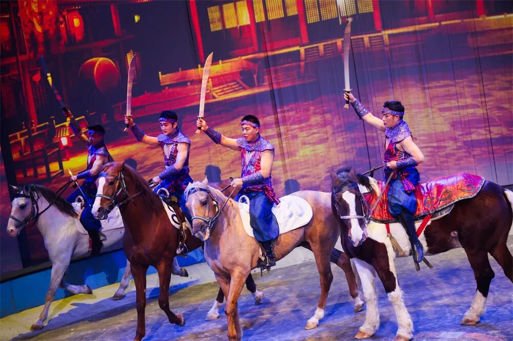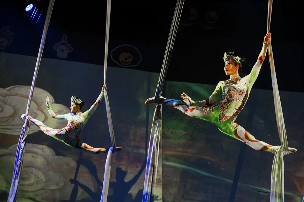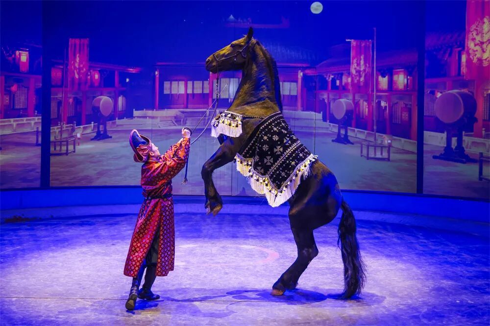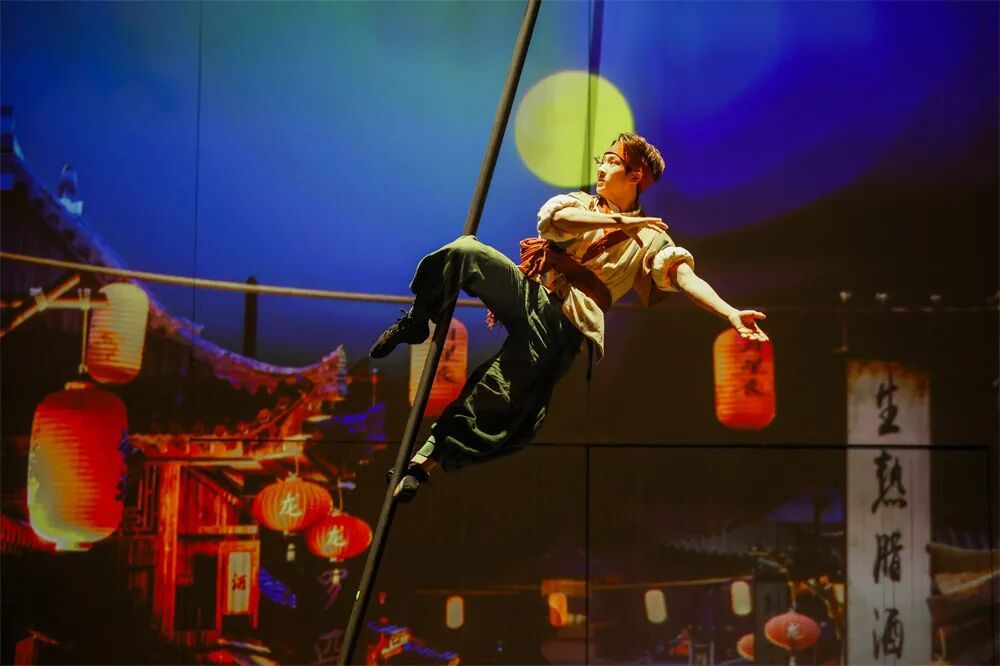 剧中融入了近20个经典杂技与马戏节目,如“飞去来器”“飞天绸吊”“古彩戏法”“舞马衔杯”等,每一项技艺都被赋予历史的语境与情感的温度,让沉睡的文物与技艺在舞台上重新呼吸。