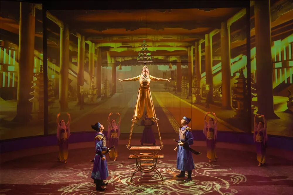 《精灵宝盒的秘密》不仅仅是一场视觉秀,更是一次向中国杂技悠久传统的深情致敬。创作团队以“时空穿越”为叙事线索,巧妙地将多个历史场景串联——从远古部族的狩猎仪式,到敦煌壁画的飞天幻想;从唐宋勾栏瓦舍的市井热闹,到宫廷宴乐的华丽气象。