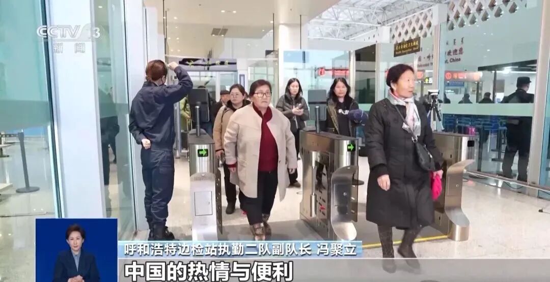 呼和浩特边检站执勤二队副队长冯聚立:“我们优化查验流程,共开设人工查验通道6条、快捷通道3条,并在现场配备手持翻译设备,加强多语言引导服务,使旅客平均通关时间缩短20%,基本实现‘随到随检、顺畅通关’,让外国游客第一时间感受到中国的热情与便利。”