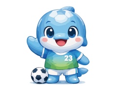 吉祥物作品“湾湾”设计说明:吉祥物“湾湾”以杭州湾海豚为原型,融合足球元素与金山滨海特色。圆润灵动的造型象征亲民与活力,球衣号码23呼应23.3公里黄金海岸线。它代表“湾区镇超”赛场上的拼搏精神、团队力量与湾区足球蓬勃向上的未来。