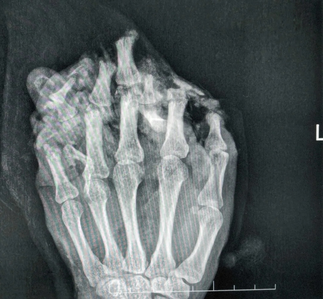 △拍片显示左手伤情严重