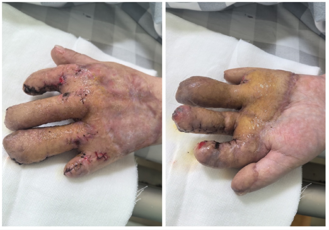 完美的指蹼(手指间的缝隙)是手指灵活张开与并拢的关键。随后,医生们开始功能重塑,通过2次分指与指蹼重建术,把粘连在一起的手指分开,重建出更自然、更深的指蹼。