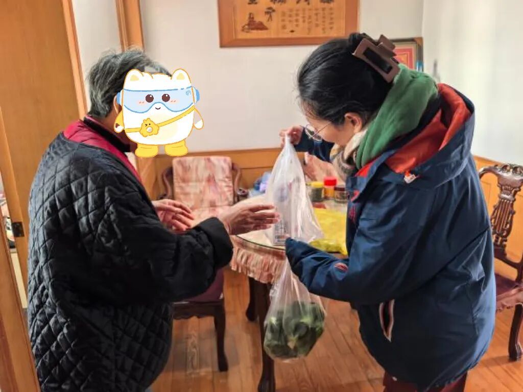 “刘阿姨,这两天身体怎么样?我们看您几天没出门,特别不放心。”徐尊俯身轻声询问。原来,老人近日受寒感冒,浑身乏力,加之行动不便、天气严寒,家中已无充足食物储备。徐尊详细询问了老人的身体状况和生活需求,网格员一一记录在册。在安抚老人安心休息后,两人随即赶往附近菜场和超市,按照老人的饮食习惯,细心选购了新鲜蔬菜、鸡蛋和牛奶等生活必需品。