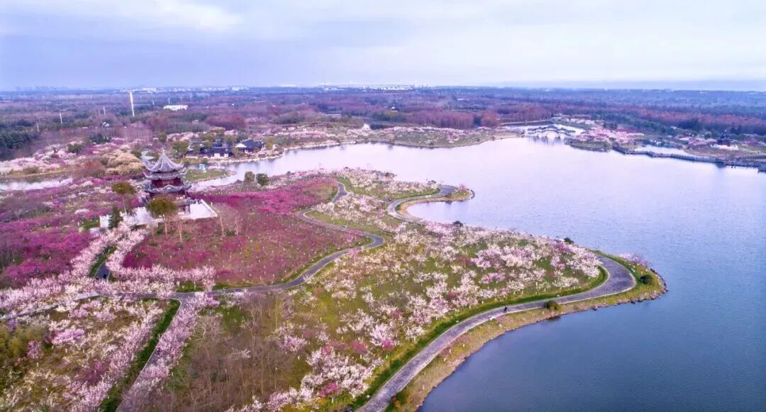 沪上超大面积的郊野赏梅地,千株梅花错落植于森林湖畔,梅林成片、花海连绵。