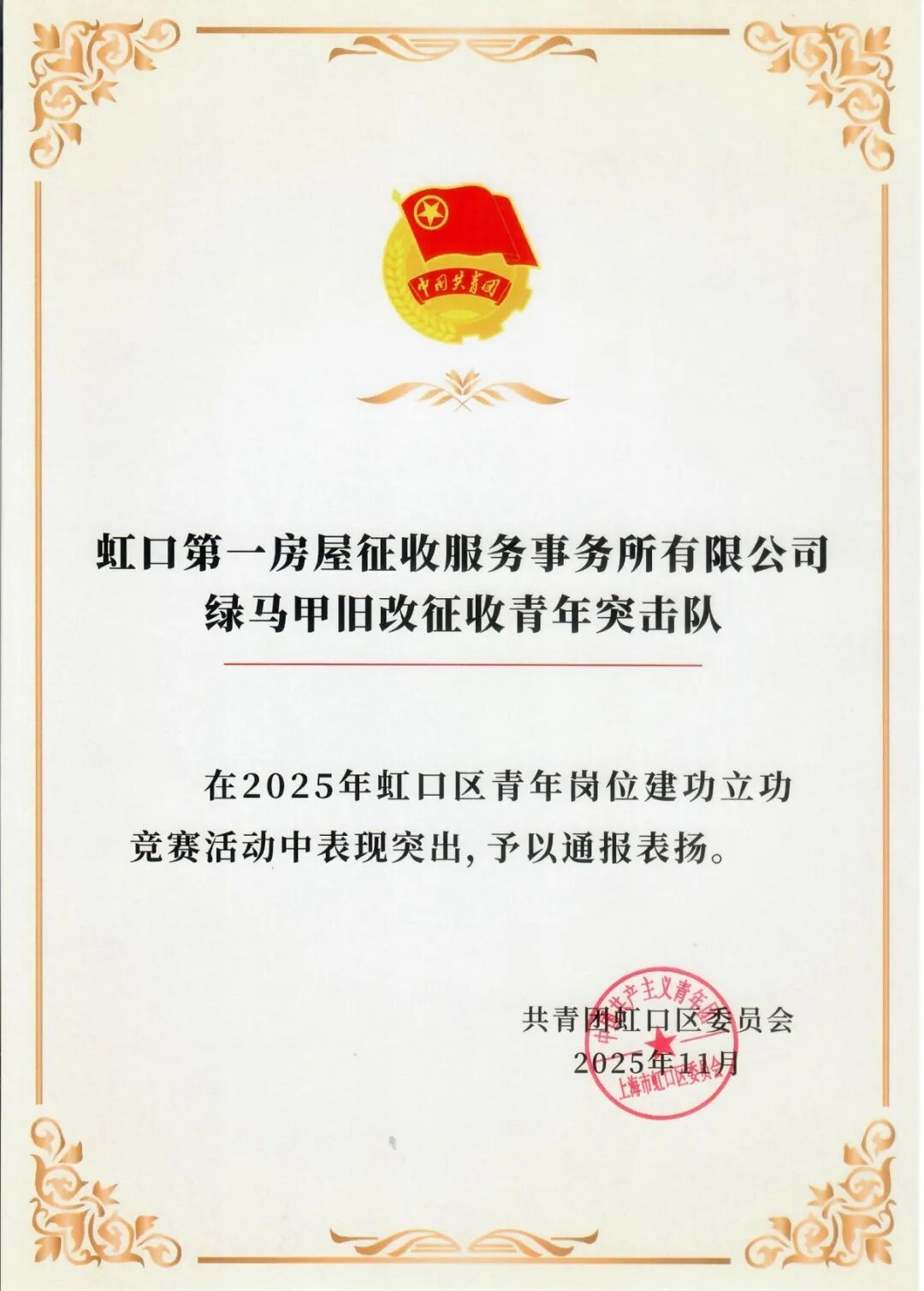 ☝ 集团成套改造部获得虹口区立功竞赛“优秀个人”