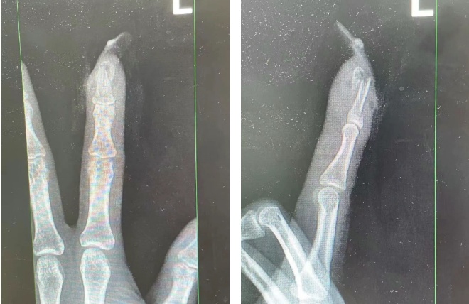 王女士受伤手指的X光影像。图源:杭州市临平区中西医结合医院
