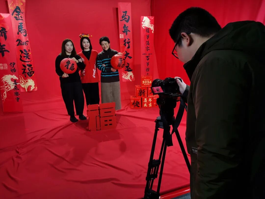 活动也吸引了辖区企业员工的积极参与。日播集团的七名女员工组团前来,一进门便被“繁花时尚”的布景吸引,纷纷在花团锦簇前调整姿态、绽放笑容。“希望团队新年新气象,事业生活都能繁花似锦!”人力资源经理戴丹笑着道出共同心愿。意犹未尽的她们随后又移步至“福至新春”背景前,或端庄或活泼,摄影师敏捷地捕捉下一个个精彩瞬间,现场气氛欢快热烈。