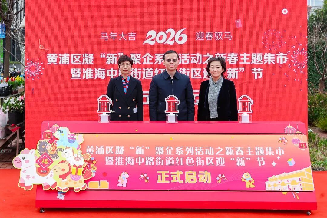 2月5日,迎“新”聚力Horse(好事)连“联” ——2026年黄浦区凝“新”聚企系列活动之新春主题集市暨淮海中路街道红色街区迎“新”节启动,拉开街区共治新序幕。区委常委、组织部部长李铭出席。