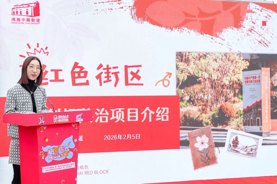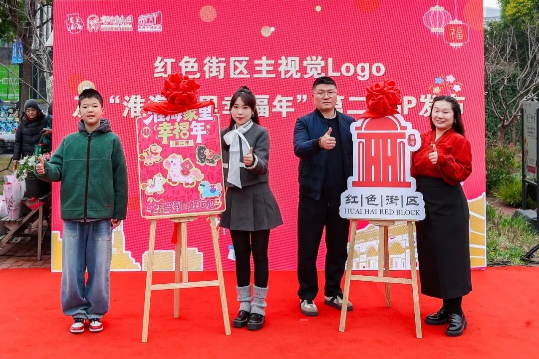 随着马年春节的脚步越来越近,几位属马的发布人——街道干部、医务人员、社区学生、企业白领一起登场,共同为红色街区主视觉Logo与“淮海家里幸福年 第二季”IP正式揭幕,为街区注入新的标识与活力。