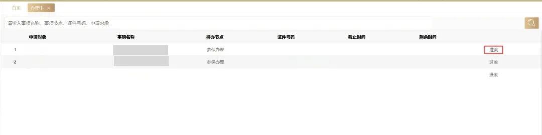 点击相关事项旁的“进度”,即可查询该业务当前的办理进度。