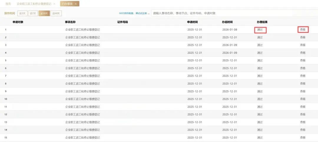 可进入“已办事项”中,查询当前已显示“办理结果”的业务。