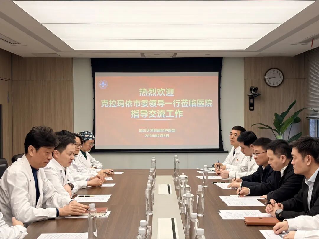 2月5日,克拉玛依市委副书记、上海援克前方指挥部总指挥罗志松,克拉玛依市委副秘书长、组织部副部长(援疆)、上海援克前方指挥部综合组组长张懿溢,克拉玛依市卫健委党组成员、副主任(援疆)、上海援克前方指挥部医疗组组长刘东升一行莅临同济医院,进行援疆工作交流座谈。医院党委书记高源主持会议,李冬副院长、第十一批援疆干部及相关科室代表出席会议。 会上,同济医院党委副书记、院长徐金富致欢迎辞,并简要回顾了医院自2017年以来,累计选派28名骨干投身援克事业的奋斗历程。他表示,援疆工作不仅为当地医疗事业发展作出贡献,也使援疆干部在政治素养、专业能力、管理水平和群众情怀等方面获得全面成长,对此特别向前方指挥部长期以来的指导、支持与关怀表示衷心感谢。 援疆干部代表刘琦在会上汇报了在疆期间的工作情况与感悟。他表示,在援克前指的坚强领导和当地医院的大力支持下,各位援疆干部充分发挥专业优势,积极投入临床诊疗、教学培训、科研指导与基层服务,通过“师徒结对”“远程会诊”“名医工作室”等多种形式,助力克拉玛依医疗服务能力持续提升,赢得了当地群众的高度信任与深厚情谊。 罗志松同志在讲话中充分肯定了同济医院多年来对援疆工作的高度重视和持续贡献,对援疆干部展现出的专业精神、奉献意识和扎实作风表示高度赞扬。他指出,援疆工作是服务国家战略、促进民族团结、推动区域协调发展的重要举措,克拉玛依作为新疆经济社会发展的排头兵,正全力推进“科教兴市”战略,打造北疆区域医疗中心,迫切需要上海优质的医疗资源与人才支持。他希望同济医院继续发挥高校附属医院的学科优势与人才优势,在重点学科建设、骨干人才培养、科研项目合作、远程医疗等方面加强对接,推动援疆工作从“输血”向“造血”深化,助力克拉玛依医疗卫生事业高质量发展,持续擦亮上海医疗援疆品牌。 高源同志表示,医院将始终秉持服务国家大局的政治站位,扛起对口支援的政治责任,围绕克拉玛依市发展战略,聚焦医院重点学科共建、人才梯队培养、科研协同创新和远程医疗协作等领域,系统谋划、精准施策、持续用力,以更高的使命感、更强的专业力、更实的工作举措,为推动新疆卫生健康事业发展、增进各族人民健康福祉贡献同济力量。
